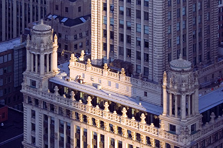 | 5. Sentinel Prime hops down to the first setback of the 40-story 35 East Wacker Drive, formerly known as the Jewelers’ Building, overlooking the Chicago River and Marina City. |