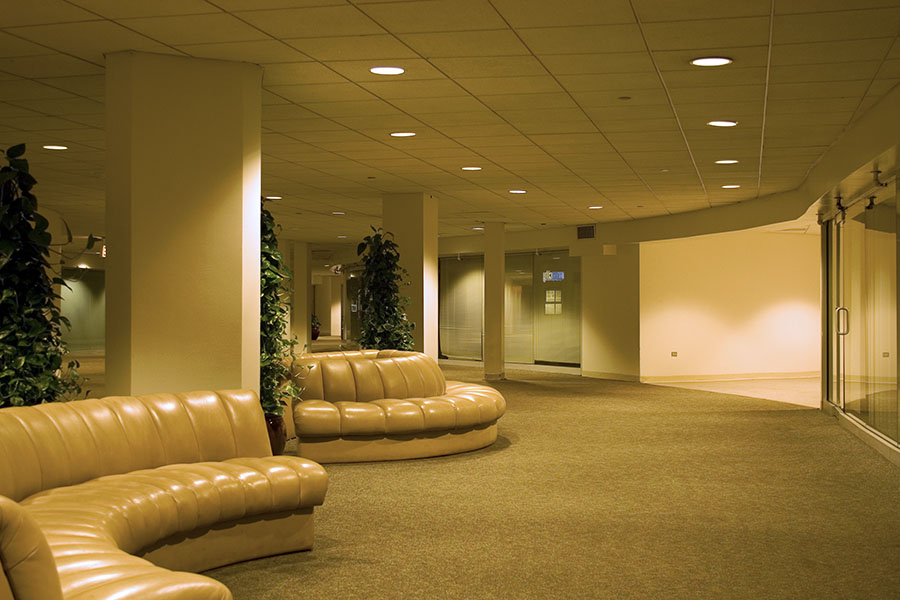 | (Right) Curved sofas that were part of Marina City’s concourse level for decades, reupholstered for office space at Merchandise Mart. Photographed on February 8, 2013. | ![]() |
