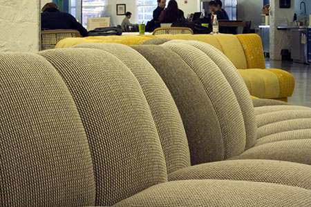 The sofas were installed at 1871 in April 2012. Since then, Heiser says Roe has turned down numerous requests to repeat the design. (Left) Close-up of one of the sofas. |