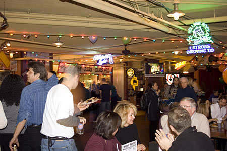 | (Right) Dick’s Last Resort serves free food and drinks to approximately 400 Marina City residents on November 10, 2008. The restaurant/bar was closed to the general public for the two-hour event. | ![]() |