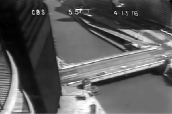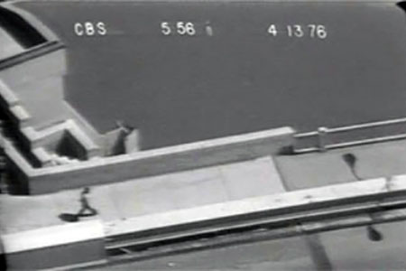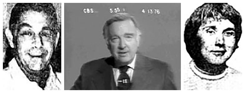(Left) Joy Tallarico, the victim’s sister, is interviewed at her Marina City apartment by a young Bill Kurtis. Introduced by Walter Cronkite, it was the last story on CBS Evening News for April 13, 1976. |