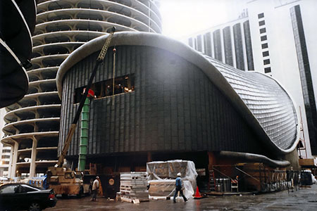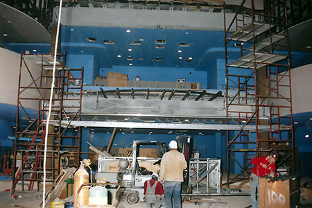 (Right) Construction of the music hall at House of Blues in the late 1990s. |