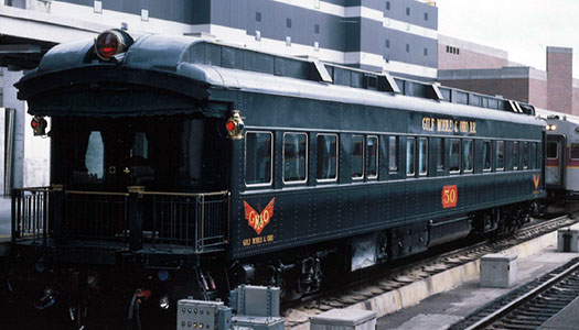 (Left) The 1928 railroad carriage that Isaac Tigrett rode to Marina City on September 14, 1995, for the House of Blues groundbreaking ceremony. Car 50 was previously owned by the Gulf, Mobile and Ohio railroad. “I hope it stimulates the idea that there can be opulence and grace in harmony with movement,” Tigrett said of his private railroad car. Photo obtained from Tigrett’s website. |