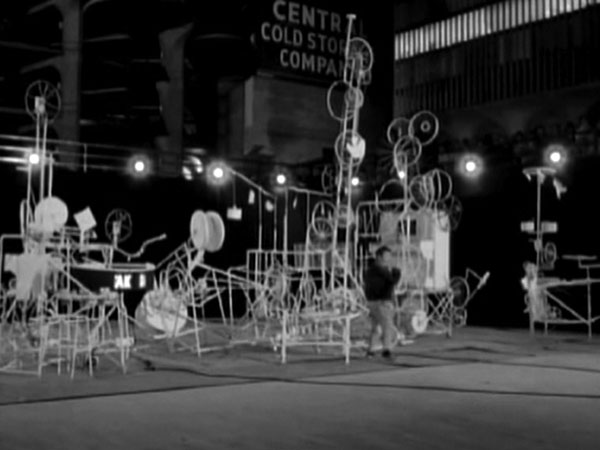 Around May 1964, scenes were filmed at Marina City for Mickey One, a surreal, freewheeling drama released on September 27, 1965, by Columbia Pictures. It was directed by Arthur Penn, whose work includes The Miracle Worker, Bonnie and Clyde, and Alice’s Restaurant. (Right) Title card of 1965 film Mickie One (Columbia Pictures). |