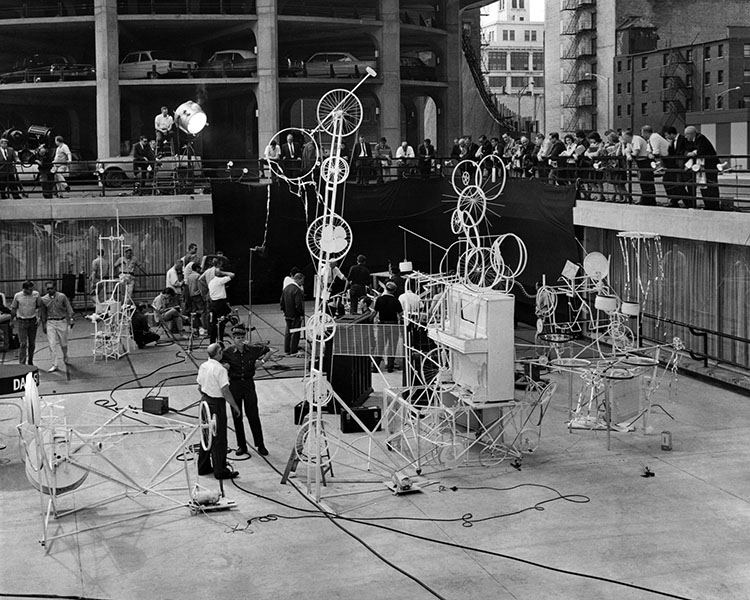 (Left) For this scene in Mickie One, an elaborate artwork was constructed on Marina City’s skating rink. |