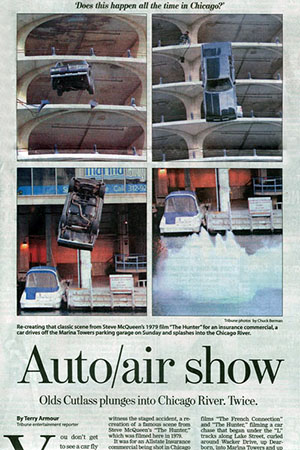 Once it was decided Marina City would be the location, it was up to location managers Al Cohn and Brady Breen to make it happen. Cohn made the advance arrangements – with Marina City, Chicago police and fire departments, U.S. Coast Guard, a salvage company, and others – and then Breen managed the location once filming began.