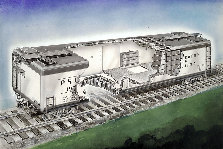 When he approached the Pressed Steel Car Company about building the prefabricated bathroom on a larger scale, it led to Goldberg’s next opportunity. Company president John Snyder asked Goldberg to design a new freight car built of laminated plywood, replacing steel that was still in short supply after the war.