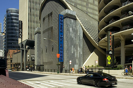 (Right) Today, this space is home to House of Blues, seen here from across Dearborn Street in 2009. |