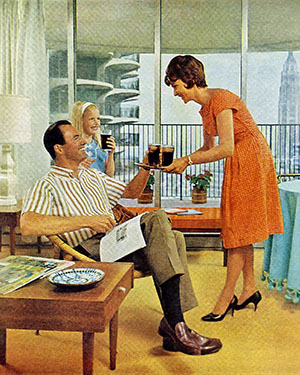 Not even Marina City could keep Hiram Walker in Peoria. In this 1969 ad for Hiram Walker’s “Ten High” straight bourbon whiskey, a man offers a drink over his balcony in what is most likely the west tower. “Come over soon,” invites the ad copy. “We have something good for you.” At the time, Hiram Walker & Sons Inc., with a distillery built in 1933, was in Peoria, Illinois. A French company, Pernod Ricard, currently owns Hiram Walker. The distillery was purchased by ADM in 1980 and now makes ethanol. |