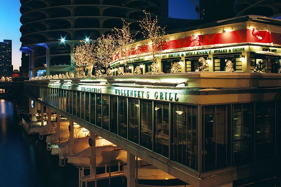 (Above) Smith & Wollensky from State Street Bridge on December 16, 2007. Marina City’s west tower at left.
