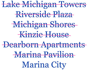 (Left) Other names that were considered for what would eventually be known as Marina City. |