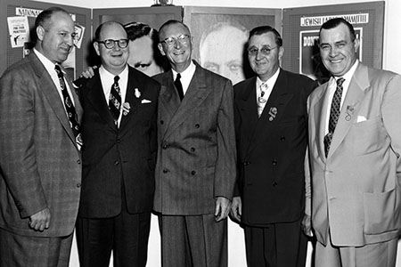 (Left) William L. McFetridge (center) in the early 1950s, posing in front of a labor display with (left to right) George Hardy, David Sullivan, McFetridge, William Cooper, and unidentified. Photo by Ransdell Photo. Walter P. Reuther Library, Archives of Labor and Urban Affairs, Wayne State University. |