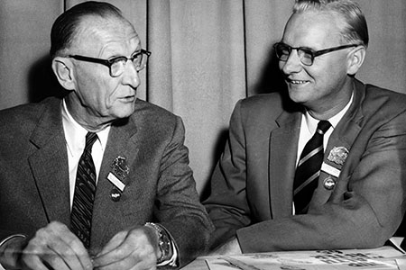 (Left) William McFetridge (left in photo) in 1962 with Service Employees International Union officer Albert Hearn. Photo by Alexander Archer provided by Walter Reuther Library, Wayne State University. |