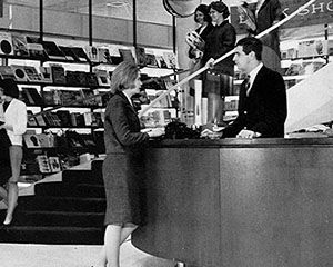Marina City Bank welcomes its first customers with innovative features like closed-circuit TVs and pneumatic tubes. |