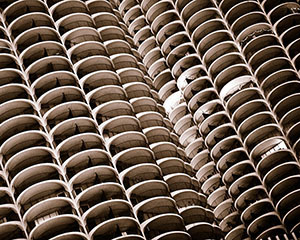 Bertrand Goldberg’s unique tree-like design features expansive balconies and kinetic space that promotes individuality for residents. |