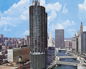 Considered an iconic image of Chicago, Marina City starred in many postcards in the 1960s. |