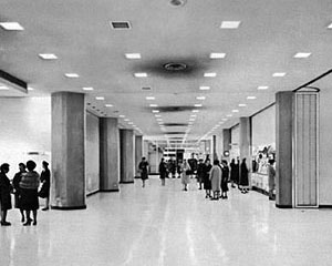 By the end of 1964, Marina City featured diverse businesses like a pharmacy and a bank, alongside a health club and summer sculpture exhibitions. |