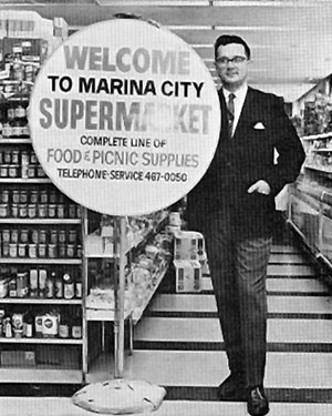 Marina City Finer Foods was located on the concourse level in space now occupied by Smith & Wollensky. It was open every day, selling meat, produce, groceries, baked goods, prepared foods, and sundries. There was a free delivery service – either to your apartment if you lived at Marina City or to your car if you worked there. (Left) Chalmer Herold, owner of Marina City’s grocery store. |