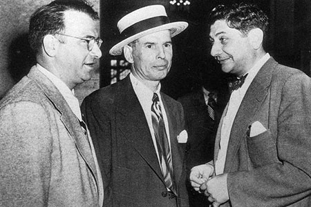 Murray “The Camel” Humphreys (center) with attorneys Mike Brodkin (left) and George Bieber (right) on July 1, 1946. |