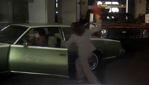 Bernardo steals a car idling on the ground floor of the east tower parking ramp. |
