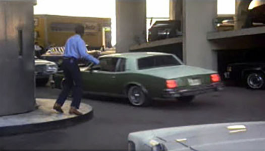 (Above) A green 1980 Grand Prix Pontiac sails off the west tower parking ramp at Marina City in a scene from the film “The Hunter” that was filmed on September 21, 1979.